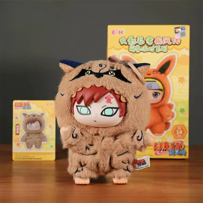 Chibi tarzında işlenmiş yüz hatları, parlak kırmızı göz detayları ve maskeli görünüm, karaktere güçlü bir ifade kazandırır. Premium kalite peluş malzemesi ve yoğun tüy dolgusuyla hem elde yumuşacık hissedilir hem de uzun süre formunu korur.